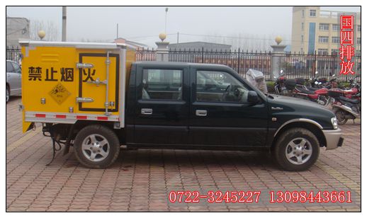 慶鈴皮卡四驅爆破器材運輸車:慶鈴皮卡四驅爆破器材運輸車采用的是慶鈴輕型汽車底盤QL10307GDSB型四驅底盤改裝而成,配以五十鈴的4JB1-TCT 排量2771ml,功率為70kw;貨廂尺寸為:1430×1605×1060。整車具有體積小,運輸便利,四驅的動力強勁等特點,特別適用于山區(qū)路段運輸雷管炸藥及爆破器材等危險品。