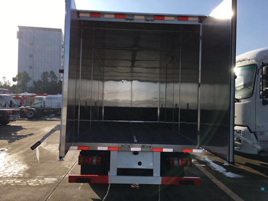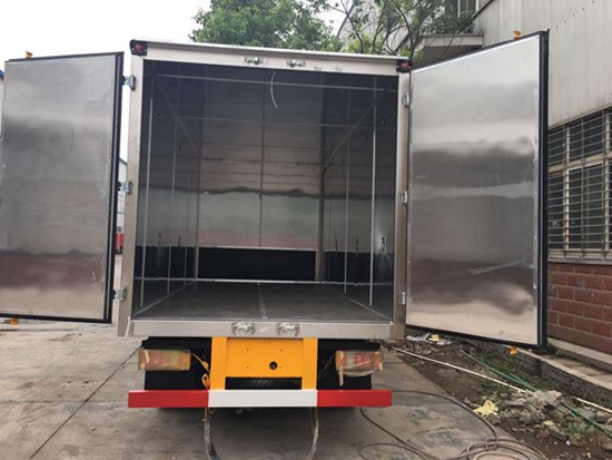 其次我們再來看看江鈴4.2米防爆車的廂體制作,廂體側壁設有防雨功能自然通風窗口,保證廂內(nèi)外空氣流通;廂體內(nèi)部做防靜電處理,廂體底部與廂內(nèi)前部鋪有阻燃導靜電膠板,并與底盤等電位連接,通過車輛后端的導靜電裝置與大地相連,可防止靜電火花的產(chǎn)生和車輛靜電及時釋放,廂體內(nèi)部前面和側面裝有固定拉環(huán),避免貨物移動,以保證安全。廂體頂部安裝有感煙報警器,以感測車廂內(nèi)的火情,當有火情出現(xiàn),駕駛室內(nèi)進行蜂鳴報警通知駕駛員;車廂后門和側門均安裝有門磁開關報警器,當廂門被打開時,駕駛室發(fā)出蜂鳴報警。