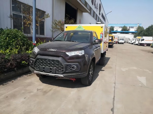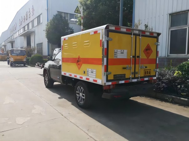 江鈴四驅(qū)皮卡民用防爆車是采用江鈴域虎原廠?;妆P,底盤型號:JX1033TA6,江鈴140馬力柴油發(fā)動機(jī),國六排放標(biāo)準(zhǔn),6檔變速箱,四驅(qū)系統(tǒng),多功能方向盤,8寸多媒體全液晶大屏,剎車系統(tǒng)為四輪蝶剎,主副駕搭配兩個安全氣囊,電動門窗,中控門鎖,空調(diào),雙預(yù)警。廂體為雙層金屬結(jié)構(gòu),外板采用靜電屏蔽冷軋鋼板,中間填充B1級阻燃泡沫,內(nèi)飾為鋁板。廂體上側(cè)安裝防雨通風(fēng)透氣孔。底板為平板,上鋪防靜電膠皮,廂內(nèi)兩側(cè)加裝固定貨物臥環(huán),廂體右側(cè)前開側(cè)門。門框帶防盜報警器,頂部帶煙霧報警器。配備隨車工具,其他按公告標(biāo)準(zhǔn)制作。