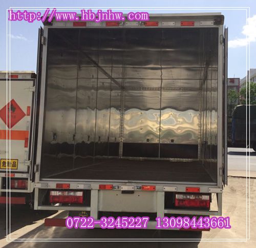 福田中馳易燃?xì)怏w廂式運輸車廂體配置:廂體外采用1.2mm冷軋鋼板,有一次沖壓成型百葉窗,中間是矩形管鋼骨架,中間填充阻燃材料,內(nèi)飾鋁合金板,五層經(jīng)現(xiàn)代化工藝復(fù)合面成;排氣管前置,帶防火帽,廂體內(nèi)飾臥環(huán),煙霧報警器,前置防撞靜電膠皮,防盜報警器,滅火器,危險警示燈,危險標(biāo)識等。