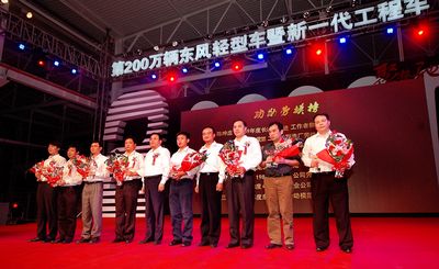 2012年5月,東風(fēng)公司又創(chuàng)造了另一個(gè)輝煌,東風(fēng)汽車股份公司第200萬輛東風(fēng)輊型車暨新一代工程車下線了。5月5日晚,東風(fēng)汽車股份公司在襄陽隆重舉行了慶典活動(dòng),東風(fēng)公司、襄陽市領(lǐng)導(dǎo)、東風(fēng)汽車股份員工們共同見證了這個(gè)歷史性的起點(diǎn),隨著第200萬輛東風(fēng)輕型車東風(fēng)力拓的緩緩駛出,掌聲如雷鳴般的響起。